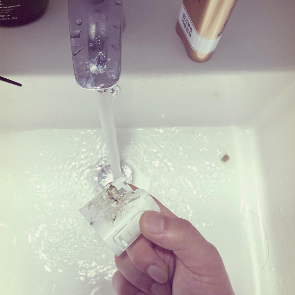 물로 헹구기만 해도 그냥 씻어져 나가니, 귀찮더라도 꼭 닦아 주세요.