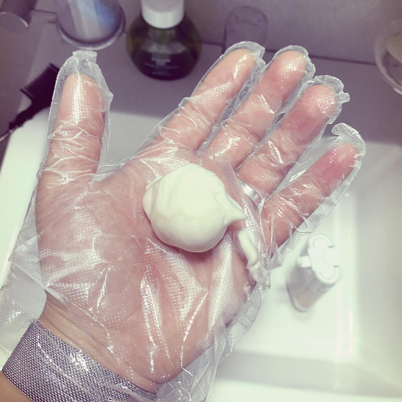 손에 분사시킨 염색약을 골고루 마사지하듯 골고루 발라줍니다.
