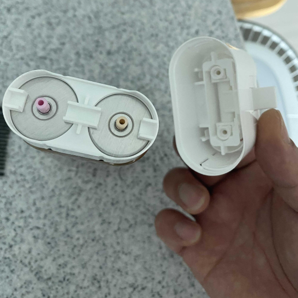 뚜껑을 열어보니 분사되는 구멍이 두 곳이 보인다.