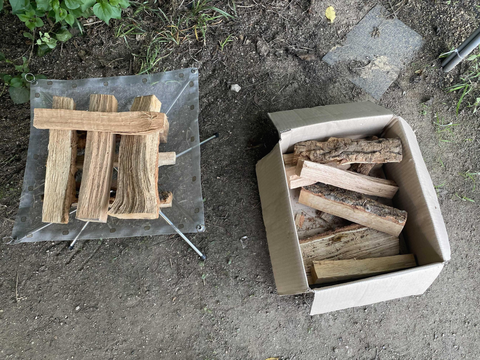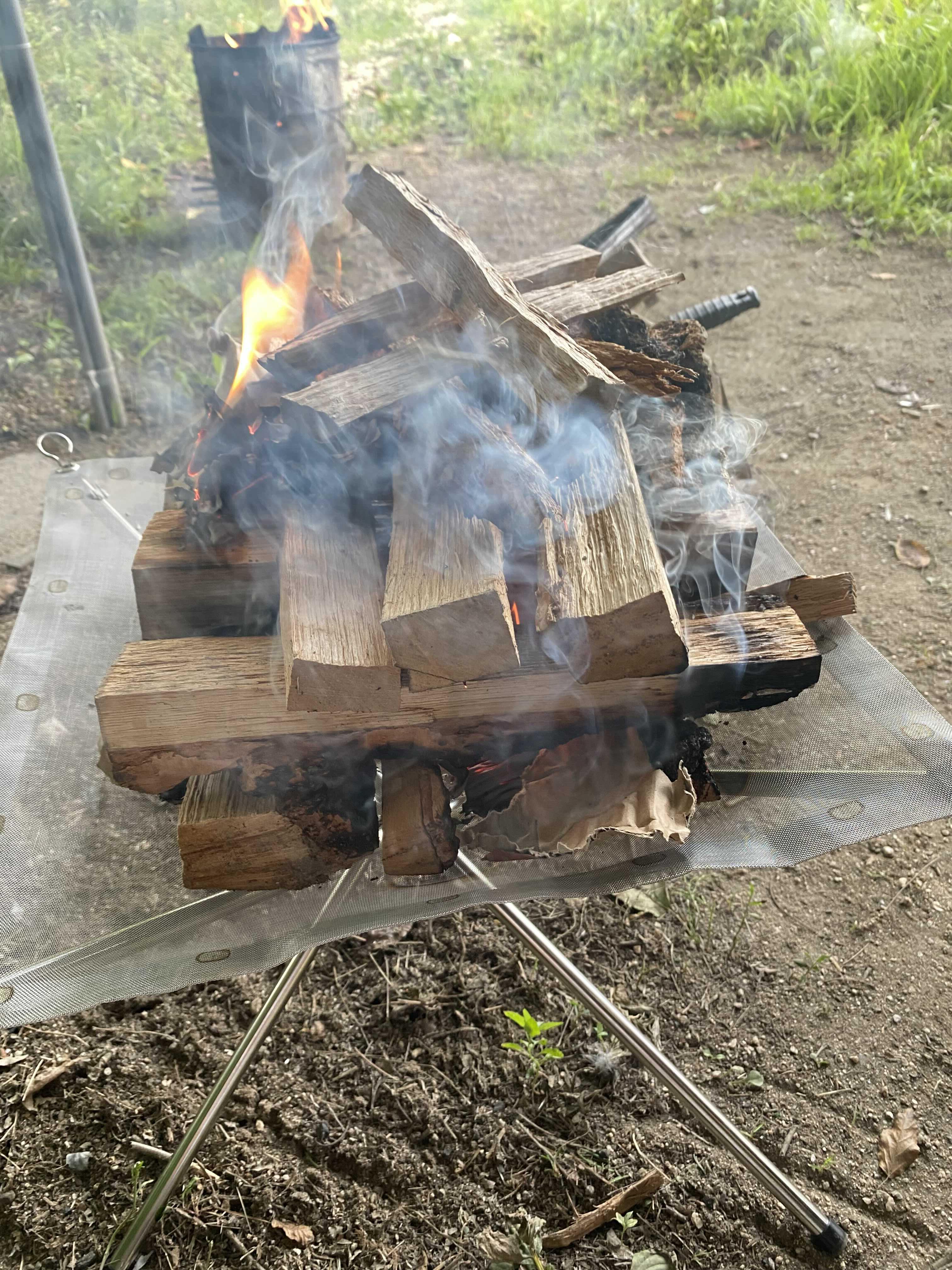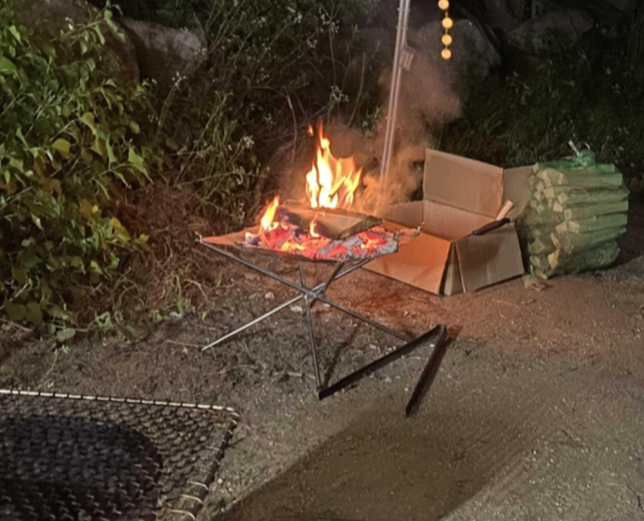 캠핑의 꽃인 캠프파이어를 위한 화로대와 장작을 준비하였다.
