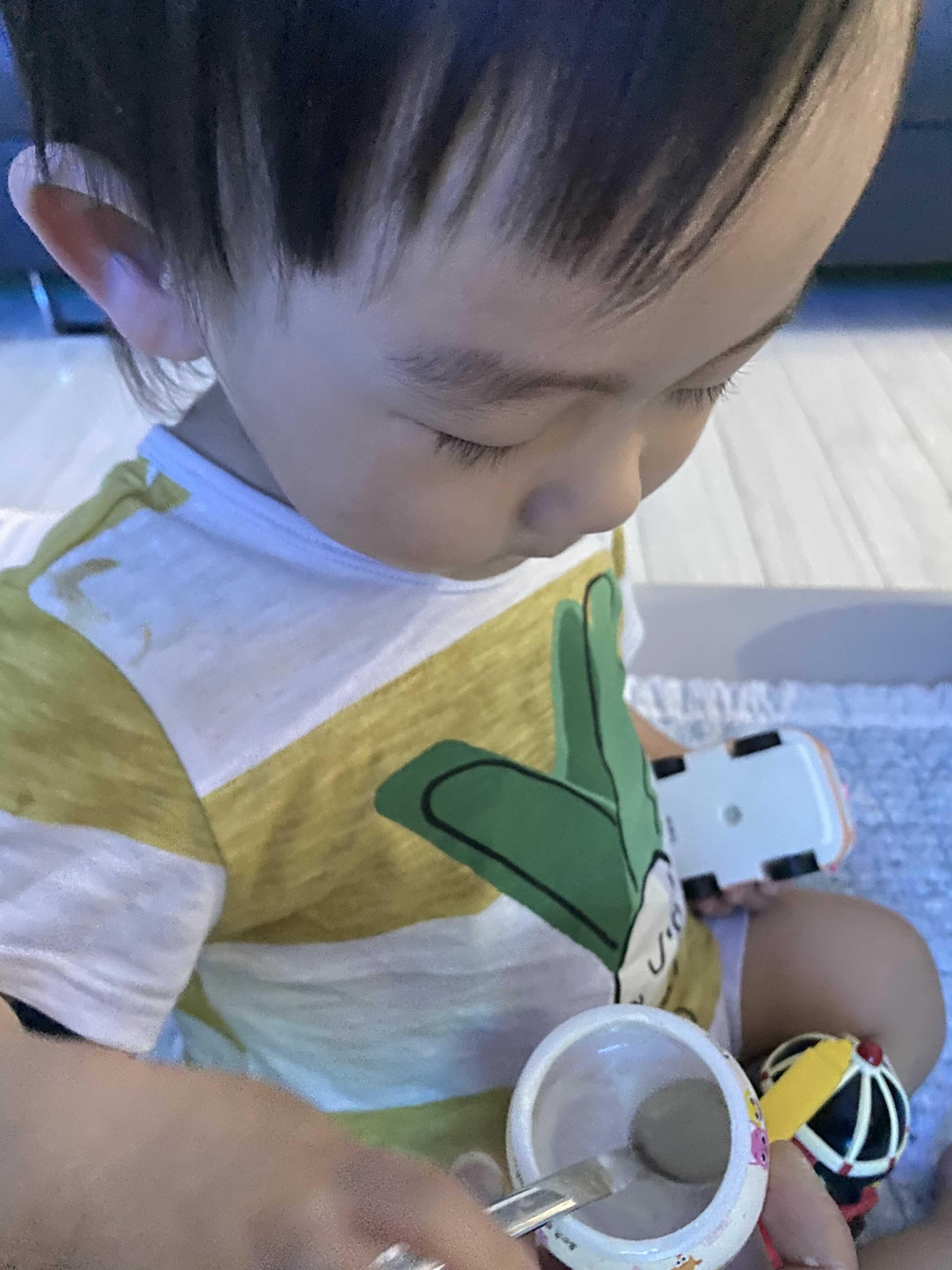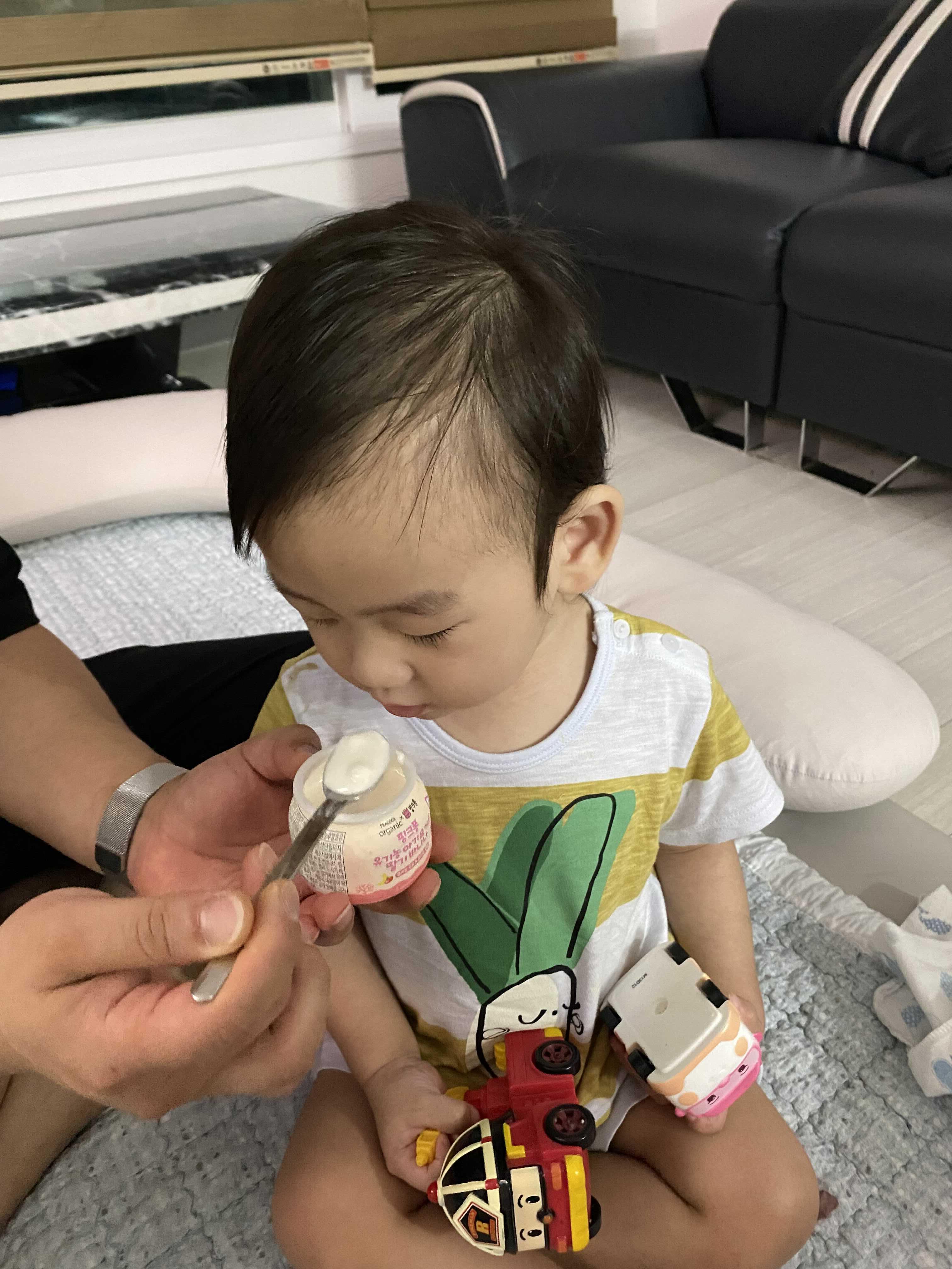 장난감 가지고 놀다가도 간식시간엔 가만히 앉아서 아기 참새 마냥 입을 벌리고 있어요.
