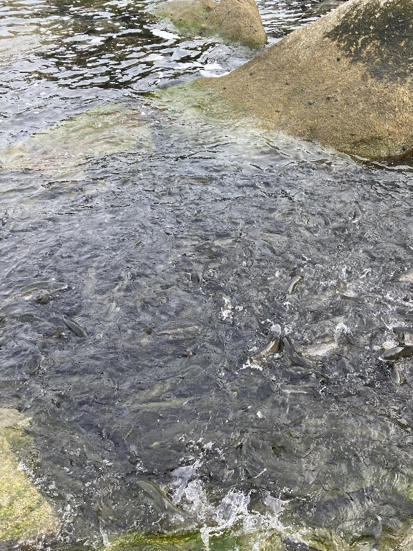 파닥파닥 황어의 힘찬 모습을 볼 수 있어요. 바닷물 속에 빽빽하게 몰려 있는 모습을 볼 수 있습니다.